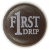 聞茶の陶器に見える不思議な缶。ミネラルウォーターはどれもキャップが青い。FIRST DRIP はコーヒーなのでキャップが茶色い。コーヒーキャンディみたいだ。