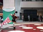 衣装で旗を持ったままイーヴォさんはホテルに帰ってゆきました。