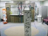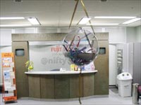 会社でくす玉が似合う場所を考えて受付にした。幸いなことに残業時間(深夜)なので誰もいない。くす玉をぶらさげて、