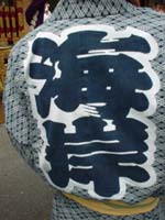終わったら真っ暗だったので、まだ明るい内の、燃え尽きる前の僕らの暑い後ろ姿です。 半被はレンタル。