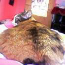 文鎮 (by あいぶさん) テレビの上には乗っていませんが、寝ている私の上に乗って、文鎮のように動きません。うなされて起きたらこの尻が目の前にあったので思わず写真にとりました。