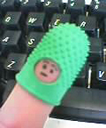 指サックですね。指サックユーザーって働き者のイメージがあります。じゃんじゃんバリバリ指を動かしてそうです。そんな働き者の指にこんな顔が……。でもボブ・サップには全然似てないですね。(DPZ・大塚)