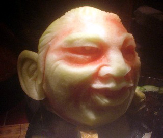これスイカですか!食べられるんですね。でも食べたくないカタチだなあ。これでスイカ割りだなんて想像しただけでおそろしいっす。(DPZ 林)