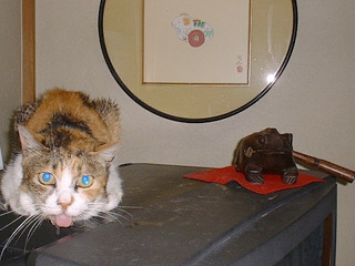 すごいカメラ目線です。あと、よく見ると写真の中に3種類の動物がいますね。(DPZ・大塚)