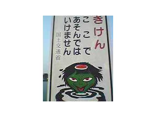 こわい・・・ (by みよこさん) こんなカッパがいたら恐くて誰もあそばない・・・と思う。以前は白目のとこが真っ赤な結膜炎カッパで、もっと恐かったのですが、クレームがきたのか塗りかえられていました。