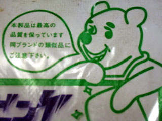 ぷーさん・・・ (by くぅさん) 昔、金融機関で貰ったふきんです。自信を持って「類似品にご注意下さい。」と言っている本人が“類似品”の様な気がするのですが・・・。
