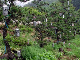 ずらっと (by かえるさん)(https://www.geocities.co.jp/AnimalPark/2978/) 多分鳥避けだと思いますが、芸術といわれればそんな気もします。