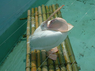 瞬間芸 (by kikuさん) ペリカンが、写真をとった瞬間に何か機敏な動きをみせた気がしました。よく見るとくちばしの袋が裏返しです。これはサービスなのか喧嘩売られたのか………。