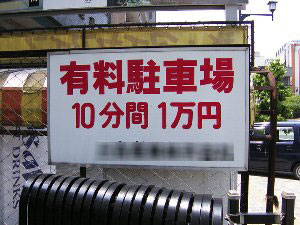ぼったくり (by 薬缶さん)(https://www5e.biglobe.ne.jp/~takettle/) 道路挟んだ向かいの駐車場には「激安 100円/40分」という看板が立ってます。その辺では相場なのにスゴク激安に感じます。