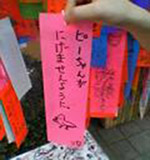 七夕の願い。 (by スギジュンさん) 亀戸で見つけた短冊。他にも、「バイキンマンになりたい」とか、ファンキーな願いがいっぱいありました。子供たちの将来が楽しみです。