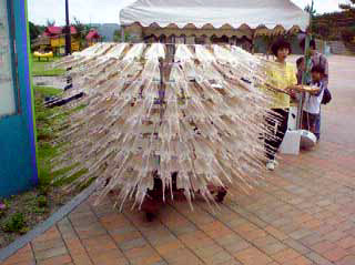 イカ、ガンガン回る (by コンビニで昼食さん) 先日、玄海灘の原子力発電所見学に行ってきました。 発電所の横にはエネルギーパークがあって、そこの広場でイカが回転してました。 館内の人に尋ねるとこれで発電してるのだそうです。 ウソ。