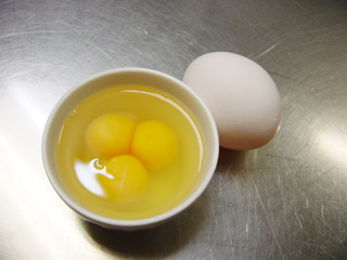 職業がら毎日玉子を割っています。双子はしょっちゅう出るのですが三つ子を見たのは生まれて初めてです。