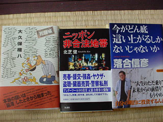大塚駅前で拾いました (by まりぞうさん) JR大塚駅前のごみすて場で拾った本3冊です。カバーがかけてあったのですが、あとでカバーをむいてみたら「ニッポン非合法地帯」「今がどん底、這い上がるしかないじゃないか」「実録サラ金サバイバル」の3冊。一体これを捨てた人に何があったのか。既に消されたのか。