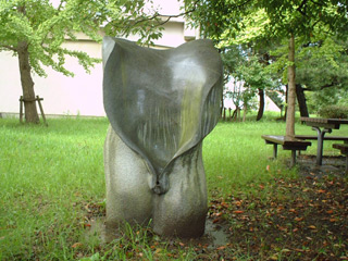 某大学構内にひっそりと置かれたオブジェ。お昼休みに隣のベンチで昼食を摂る学生をよく見かけます。