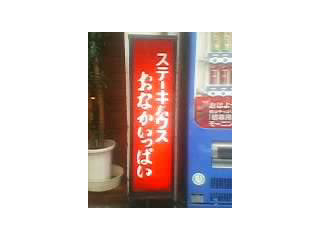 車のなかから。ひときわ目をひくステーキ屋さん。