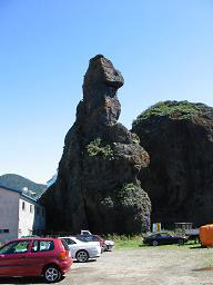 岩になったゴジラ (by ひらなおさん)(https://homepage2.nifty.com/hirakinaoru) ウトロには変わった形の岩が多いのです。これはその一つ。