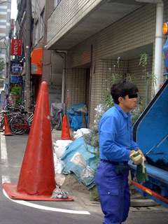 有り得ない!! (by ひとでさん) 某錦○町駅付近で見かけました。有り得ない程デカイっす!今までの人生で一番大きなカラーコーン。丁度ゴミを回収しに来たお兄さんを引き合いに撮ってみました。