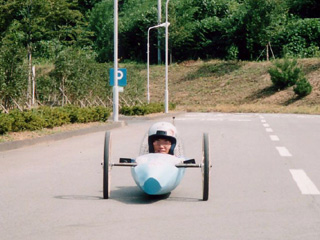 走る生首… (by らいだぁ!!さん) く…首が公道を走ってるー!!…って、これはエコランっていう低燃費自動車の走行を正面から取ったものです。実際はカヌーみたいな長細い車体に寝転んだ状態で乗っています。場所は近くの工場の敷地内なのであしからず…