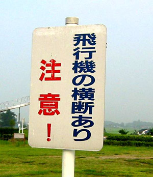 横断するんかい! (by イチノセさん)(https://homepage3.nifty.com/taware_zoushi/) 飛行機って、道を横断するのか? …と思ったら、すぐ脇にグライダーの格納庫が。半分納得。