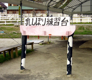 乳搾り練習台 (by のんほいさん)(https://hitokuchi.fc2web.com/index.html) 足部分を模した木の牛柄が私にはツボでした。