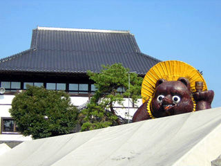 益子の狸 (by すすさん)(https://homepage2.nifty.com/butetu/) 益子の陶器市は春秋行っているが、いつも愛想の良い巨大狸、身長は不明。