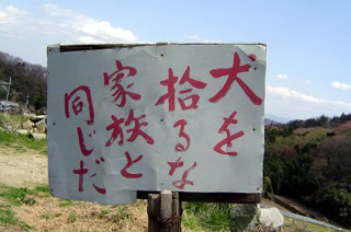 「捨てる」のつもりなんでしょうね。これは「拾う」ですが。犬を捨ててはいけません。