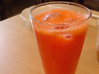 続いていただいた赤パプリカを「カルピス」と一緒にミキサーにかけたものも、すでにレシピに掲載されているもの。「青汁があるなら、赤汁があってもいいと思う」とは石田さん。
