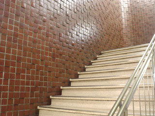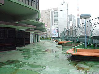 ぎちぎちした都会の眺めは爽快というかんじではないけれど、このテラスのつくりがまたかっこいい。コンクリートのベンチと、せり出すビルの屋根、UFOみたいな形の外灯などこれはうっかりおしゃれだ。