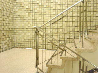さて、ジュースが出来上がったらその場で飲むのもいいけど、4Fに良い場所を見つけておいたのでそこへ行きましょう。このニュー新橋ビル、4Fからテラスに出られるのだ。