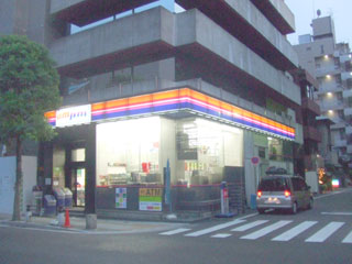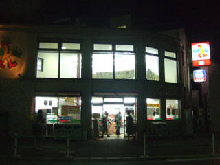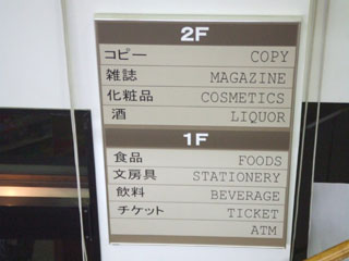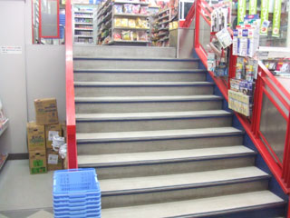 コンビニなのに売り場の中間に階段。しかもそれが異様に広い。よく百貨店や大型スーパーの階段が、火事など緊急事態の避難用にやたら広く作ってあるのを眼にするが、そんな雰囲気である。
