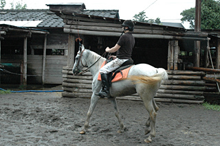 ジョギングのスピードといってもかなり激しく揺れる。鞍にお尻が当たって痛いが、グッとこらえて何周か速歩した。