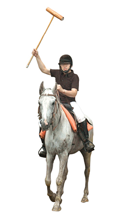 カメラを構えるスタッフからスティックの角度など指示を受け、思い出した。 そうだ、ポロのマークだ。