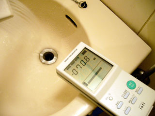 まずはマイナスイオン機能をオフにしてドライヤーを使ってもらい、計測してみる。値は部屋でふつうに計った場合と変わらなかった。