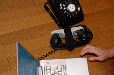 後日、カプラのメーカーに問い合わせたところ(試した日は営業時間外だったのだ)、4ページくらいのマニュアルが送られてきた。それによると、パルス回線の場合、手動でダイヤルしないといけなかったらしい。ビジネスフォンで試した時は、トーン回線だったのでオートダイヤル機能が働いてうまくいったのだ。なので、手動接続でやれば黒電話を介してインターネットにつなぐことは出来るのです。