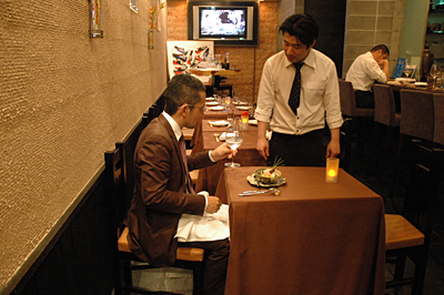 ワインを少したしなみながら、最初の料理を待つ。 口の中にはトスカーナ地方の柔らかな香りがまったりと漂っている。