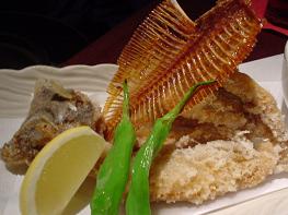 高くそびえ立つ骨が見事でこのままバサバサ飛んでいきそう。骨までカラッと揚がっていてレモンをかけバキバキ鳴らして食べた。