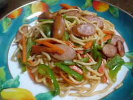 ケチャップ味のソフト生めんに、お子様大好きウィンナーを投入。