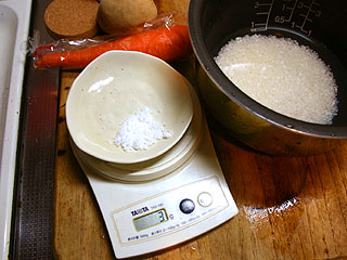 ご飯は、少々甘みが強くて砂糖を入れた事がわかる感じですが、塩昆布やハンバーグと一緒に食べると美味しく食べる事が出来ました。もう少し減らして、1合につき1g程度の砂糖なら美味しいご飯になるんじゃないかと思いました(調査しなくて申し訳ありません。)。 |