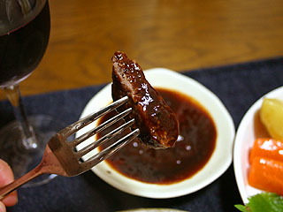 これは本当に美味しいと思いました。「このお肉、甘くておいしい!!」と言えます。ハンバーグソースのうっすらとした甘みと酸味、肉のうま味と砂糖の甘みがバランスよく口の中で共存し、失敗ハンバーグのように甘みだけが前面に出てくる事がありません。