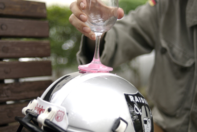 ワイングラスは底の部分が逆すり鉢状にへこんでいるため、そのすき間に入れ歯安定剤が入り込んで、ものすごく安定した。 これは入れ歯安定剤じゃなくてワイングラス安定剤なんじゃないかと思えるほどだ。 これだけぴったり安定してくれると、酔っぱらっちゃってグラスひっくり返しちゃってあちゃーっていう失敗もなくなるだろう。