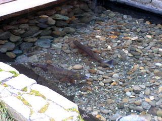 施設の方にうかがったところ、この時期、サケの卵を狙ってウグイが集まるという。