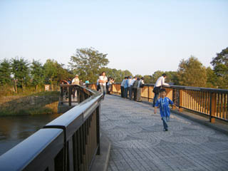 「千歳サケのふるさと館」を目指して車を走らせていると、すぐ近くの橋に人が集まって、みんなが川を見下ろしていた。
