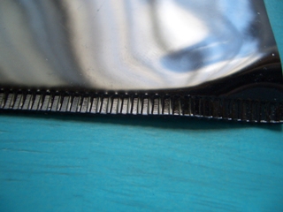 これまで手作りしてきたバッグは端を接着剤でくっつけたが、本物は熱でくっつけているのだ。これを無視したままだととてもかっこ悪い。このギザギザのラインこそがバッグ全体を締まったものにしているのだ。