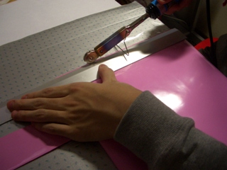 そんなわけで今回はこれを使ってビニールの生地をくっつけるのではなく、少し表面に跡を付けるだけやってみようとした。