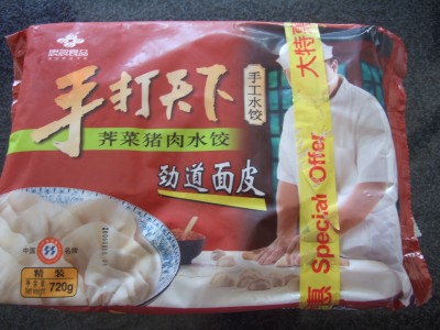 大きなスーパーで水餃子を買ってみる。日本だったら「餃子」という名の商品名でどうにかなりそうだが、中国はそうもいかない。本場なのである。日本で様々なラーメンの麺が売られているように、魚へんの漢字を日本の寿司屋で沢山みかけるように、餃子も中国では多種多様だ。中国の人が日本のラーメン屋へ初めて入ってメニューに「餃子」一種類しかなかったら「なんだよ『餃子』って、1種類しかないのかよ」とご立腹するかもしれない。なので多種多様な水餃子。しかし焼き餃子の種類は少ない。そういうもんですか。