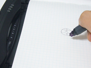 付属のボールペンでぬいーっと描くと