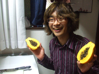 古賀:で、パパイヤを持ったこの表情(左の写真)。なんだこれ