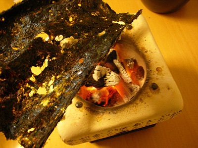 海苔を炙ってご飯と食べる