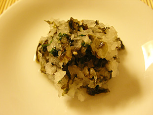 砂糖を使わないで作った塩っ辛い佃煮が、ご飯にとても合う。うん、海苔は炭水化物とよく合う。