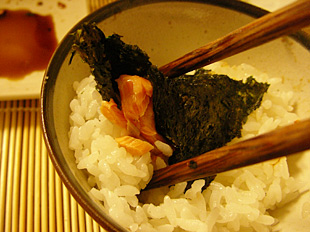 三杯目は鮭を巻いて